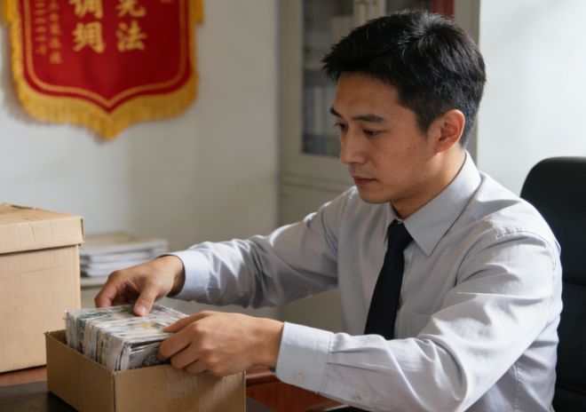他手里拿着他那个紫砂壶,另一只手,拿着一个厚厚的、用牛皮纸包裹得方方正正的文件袋。