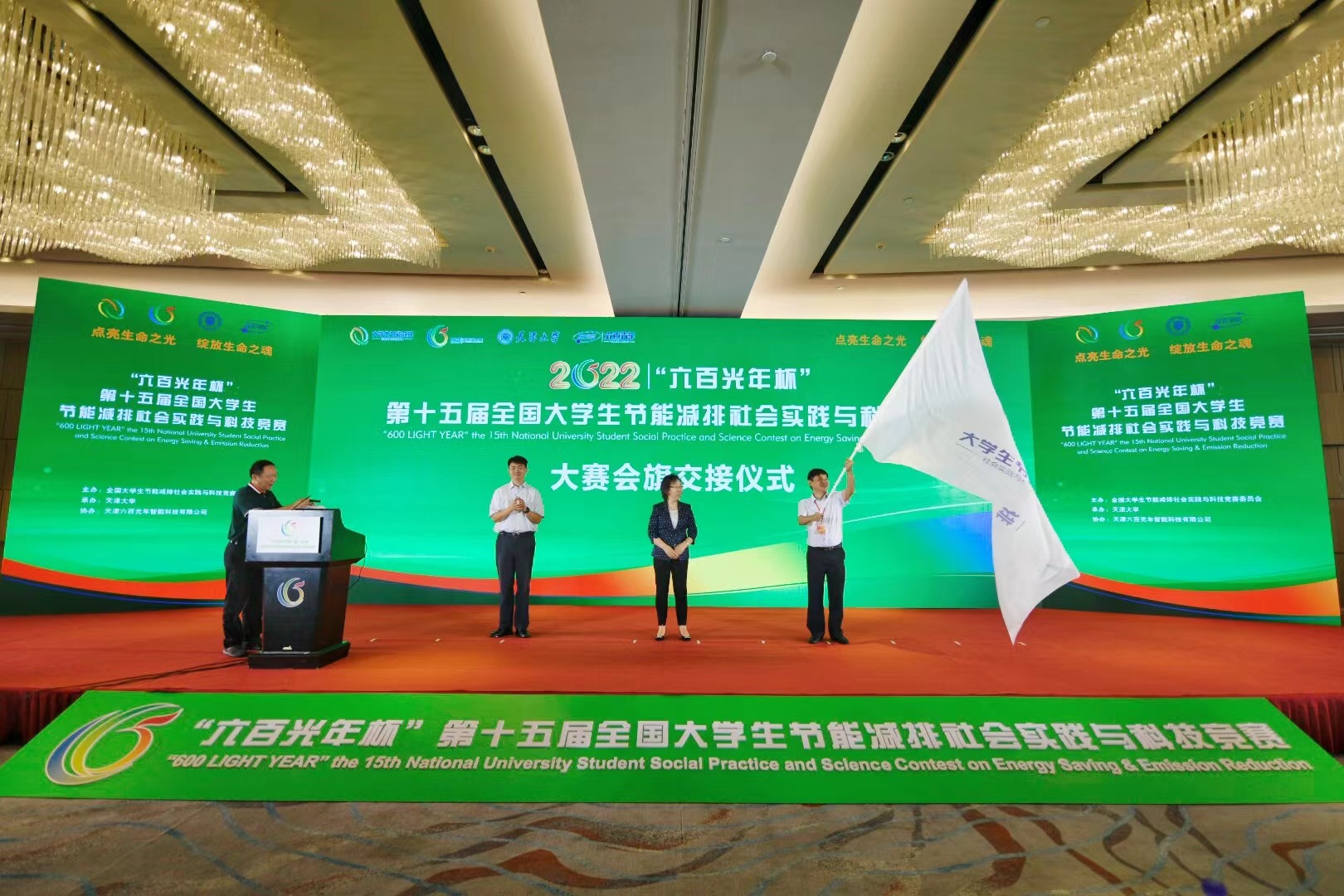 闭幕式上,何雅玲为大赛承办单位天津机械工程学院大学颁发了突出贡献奖,并向大赛下届承办单位东南大学移交了会旗。